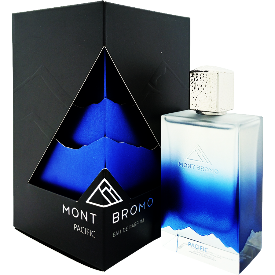 مونت برومو در تولید پسیفیک، بر استفاده از اسانسهای مرغوب و عطرسازان برجسته تأکید دارد. این عطر در غلظت ادو پرفیوم عرضه شده و به دلیل ساختار دقیق، از نظر پرفورمنس در دسته عطرهای ماندگاری و پخش بوی بالا قرار میگیرد. طراحی شیشه عطر با رنگ آبی مات، بهخوبی تلاطم و زیبایی آبهای اقیانوس را بازتاب میدهد.