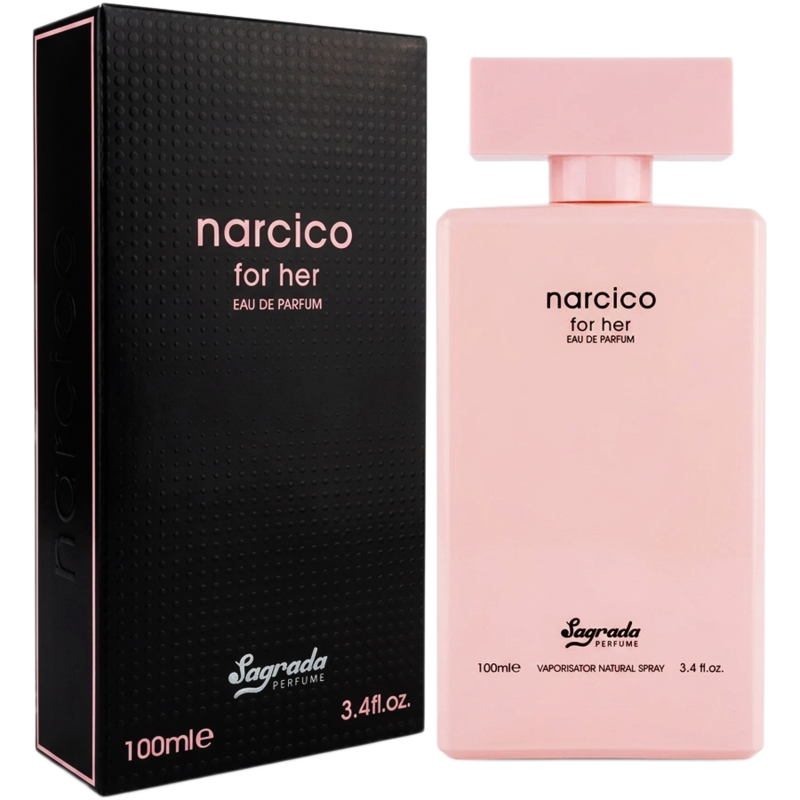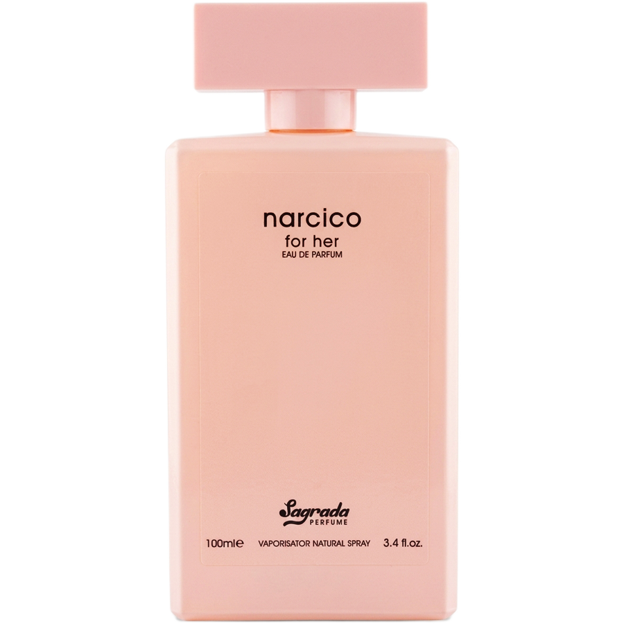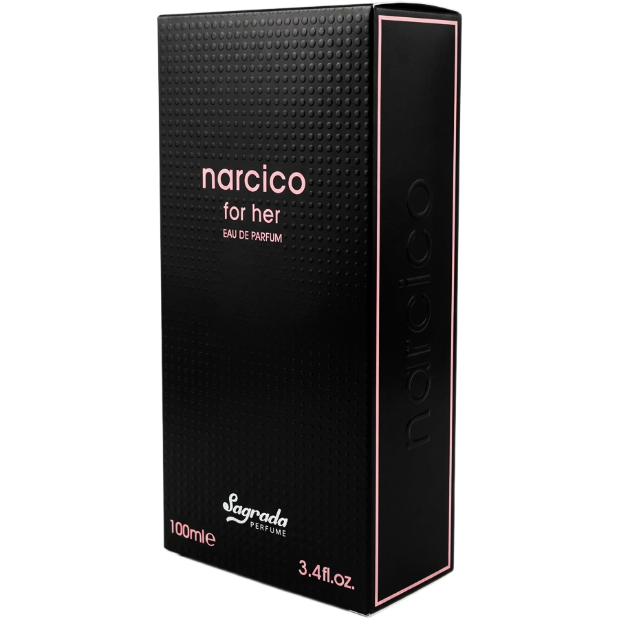 ادو پرفیوم ساگرادا نارسیسو فور هر (Sagrada Narcico For Her)، یک عطر زنانه، گلی، چوبی و مُشکی با طبعی معتدل است که با الهام از شاهکارِ بینهایت محبوبِ «نارسیسو رودریگز فور هر ادوپرفیوم» (Narciso Rodriguez for Her EDP - معروف به نارسیسو صورتی) خلق شده است. این عطر با ماندگاری بسیار خوبِ 7 تا 8 ساعت و پخش بوی قوی، یک انتخابِ فوقالعاده شیک و چهار فصل برای استفادهی روزمره است. رایحهای که نمادِ خالصِ لطافت، جذابیت و زنانگیِ مدرن به شمار میرود.